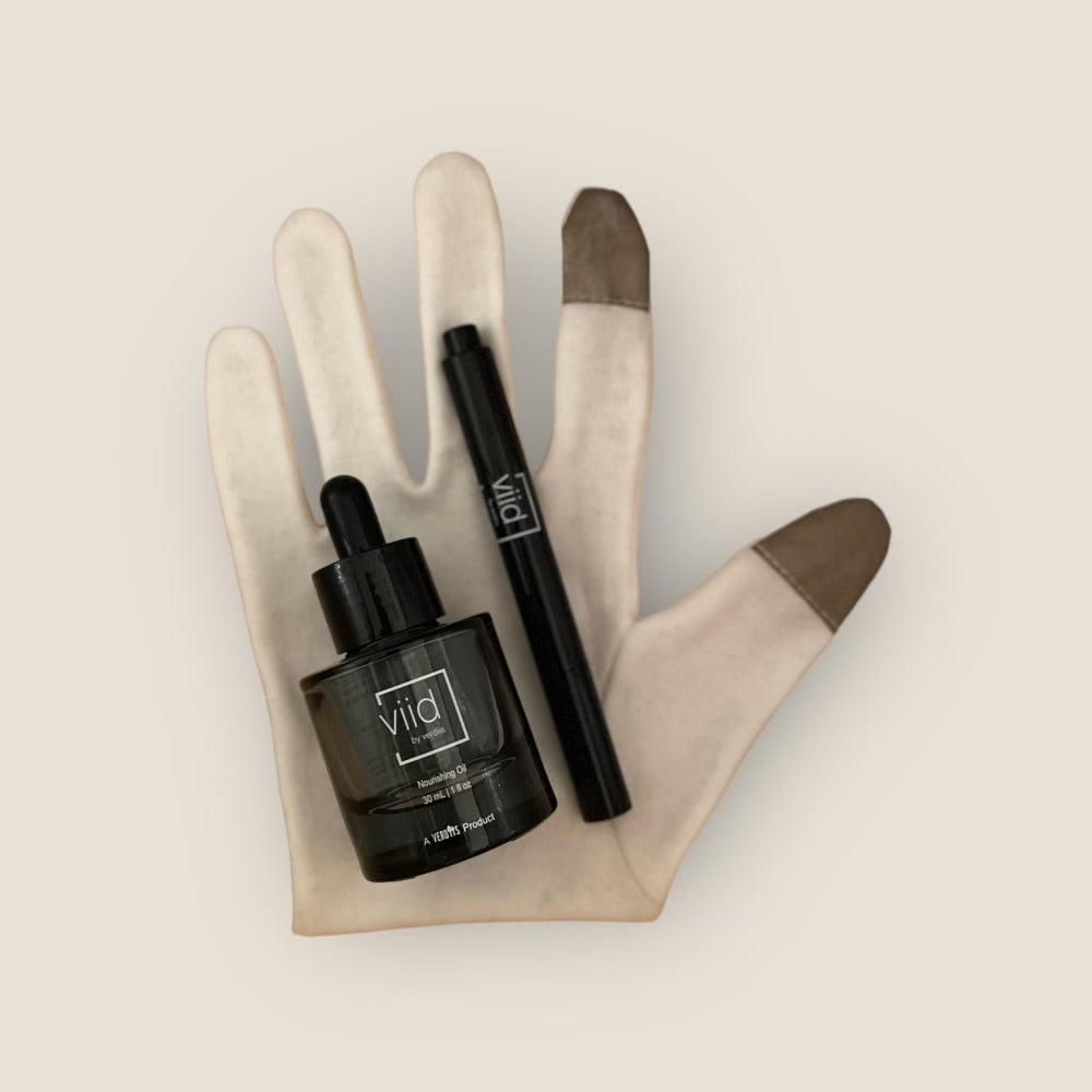 When Using the Gloves: Apply Viid to your cuticles and full hands then apply the moisture-locking gloves.